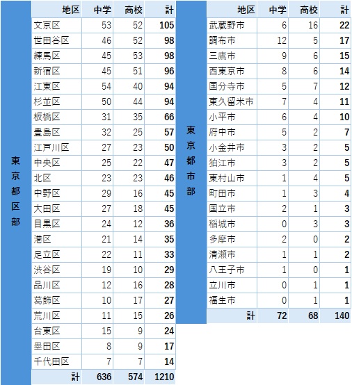 居住地別生徒数(2025年度)