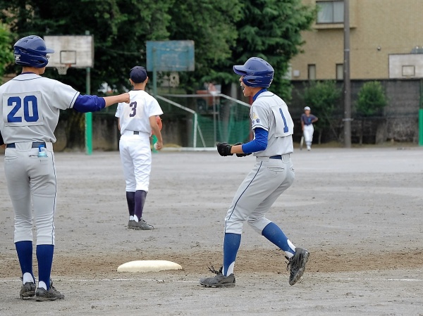 1回戦は6月5日(日)、対戦相手は四谷中(新宿区)でした。成城中先攻、初回に相手のエラーで1点先制するも、相手投手を打ち崩せず追加点を取れないまま、逆にこちらのミスで1点与え同点に。そのまま7回が終わり延長戦に入りましたが、延長8回表にエラーとヒットで1死2・3塁のチャンスを作ると、内野ゴロと内野安打で2得点。8回裏は先頭バッターにヒットを許すも、後続を打ちとり、見事延長戦制し、勝利で初戦を飾りました。