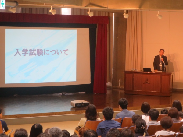 見学会では、第1部として小講堂にてスライドを用いて成城中学校・成城高等学校に関する説明をいたしました。校長からは「沿革・教育方針と今後の展望」につ いて、入試広報室の宮本からは「学校生活と進学状況」について、そして中学教頭の元島からは「入試概要」について、それぞれお話しさせていただきました。 成城での1年間の生活の流れや、進学実績等については、「年間行事」や「進学情報」のリンク先をご覧ください。