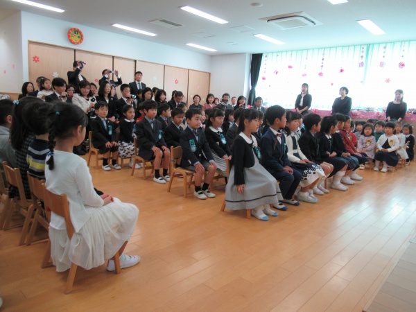 胸に付けているバッチを見ながら、「小学校に行っても、一生懸命お勉強をして(知)、お友達に優しく(仁)、チャレンジする(勇)生徒になって頑張ってくださいね。」とお祝いの言葉を贈りました。「チャレンジの意味はわかりますか?」と聞いたら「やってみること!」と返してくれました。将来が楽しみな子達です。男の子たち!成城中学校で待っていますよ。