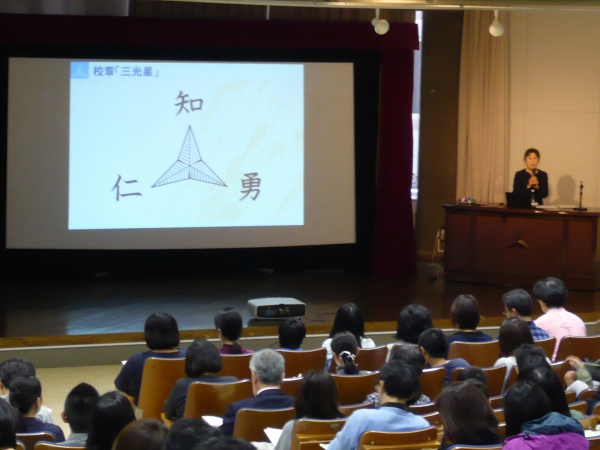 小講堂での説明の後に、複数の班に分かれ、校舎内を御見学いただきました。グラウンドの体育の授業などもご見学いただいておりました。生徒たちの元気な様子を十分にごらんいただけたでしょうか。