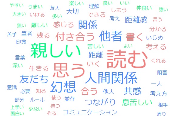 - 本には、日本は他の国と比べて友達重視傾向の傾向が突出して高いと書いてあった。確かに、メールの返信の速さで、相手の友情や愛情を測りいつも友達と行動していないと、仲間外れにされてしまうということに大きく共感を得た。また新しい言葉などによって関係を壊してしまうということもわかる。時代を追うごとに、友達との距離感に関する問題が増えてきていると思う。