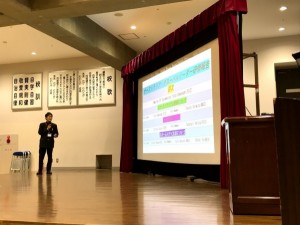 今年はさらに、新しい動きがありました。恒例の3つの研修報告の後、「トビタテ!留学JAPAN日本代表プログラム・国際ボランティア分野」、「第4回高校生親善訪中研修旅行」、日本協会主催「ジュニアフェロー・リーダーシップ・プログラム」の報告が加わりました。下の写真は、高校生親善訪中研修旅行の報告で、宿泊ホテルや食事につい報告している場面です。