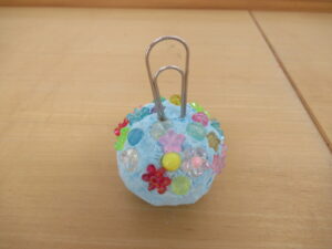 スタンドの部分は、紙粘土に絵の具を混ぜて形を作りました。