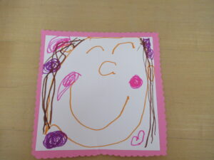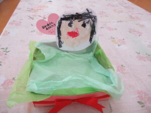 お母さんの顔を描いて箱に付け、自由にお花を詰めました。