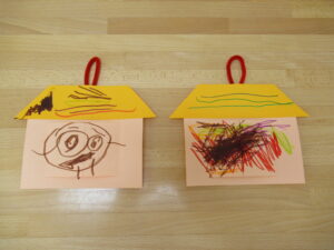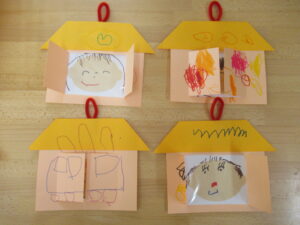 プレゼントを、持ち帰る日は、玄関で背中に隠してお母さんの所へ