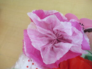 柔らかい花紙を切るところは、ちょっと苦戦していましたが、お母さんに喜んでもらえるようにと、みんな真剣です!