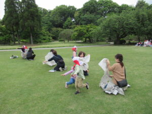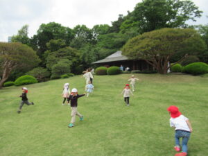 お昼ご飯の後は、大きな広場で、各々好きな遊びをして、たくさん走り回り過ごしました。