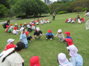 自由遊びの時間を過ごした後には、みんなでゲームをしました。