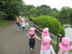 年中・年長組は、ペアになって手を繋いで遠足に行きました!