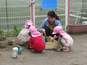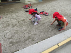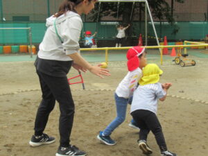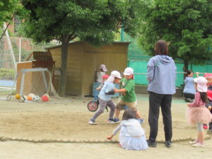 幼稚園の園庭は、雨が降っても水はけがよいので、晴れてくれば外遊びができ、おもいっきり体を動かして遊ぶことができます!