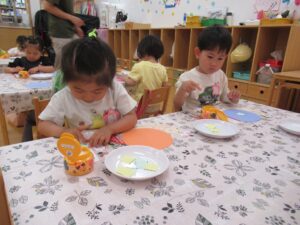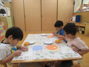 この日はのりを使ったのですが、のりの量などに気を付けながら真剣に取り組む姿が見られました。