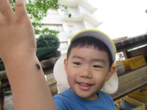 最近は蒸し暑くなり虫も出てきたので、てんとう虫やダンゴムシなど虫探しに夢中なようです☆
