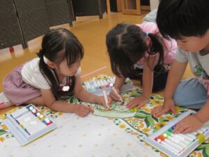 年中組は初めての前日準備にワクワクした様子で、年長組は2年目だからか、張り切った様子で登園していました♪