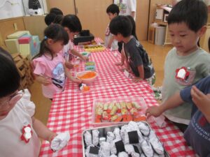 年中組は「おべんとうやさん」と「フルーツサンドやさん」の2つのお店を開きます。