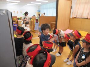 お店を開く年中組・年長組のみの登園日でした。