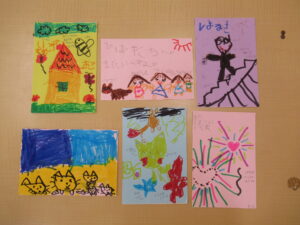 年長組ではお絵かきやメッセージを書いて手紙にする子もいます。