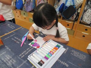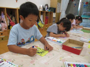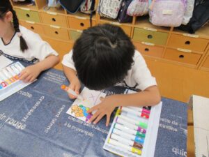 続いて年中組です。年中組はぬりえとお絵かきをしました。