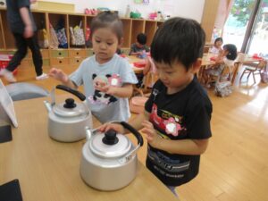 色々なことができるようになってきて、一歩一歩たくましくなっている年少組です。