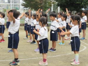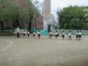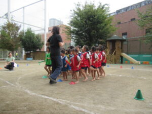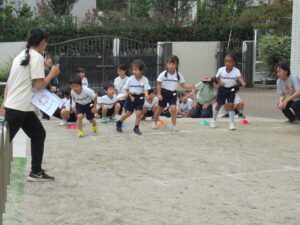 今週の19日(日曜日)にある運動会に向けて、園庭で予行練習を行いました。