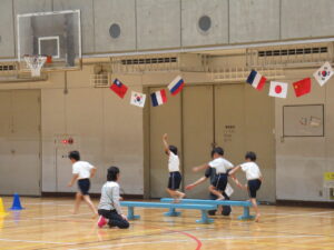次は、年長すみれ組の障害物競走です。