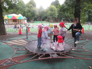 年中組と年少組は明治神宮外苑ニコニコパークに、年長組はお芋ほりに行ってきました。