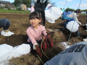 次はお芋堀りへ行った年長組の様子を見てみましょう。