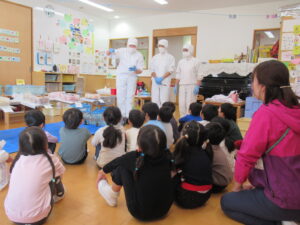 年長組さんが作ってくれた給食は、いつもとは違い「美味しいね~」「あとで美味しかったよって言わなきゃ!」と年中組も年少組も子ども達が喜んで食べていましたよ。