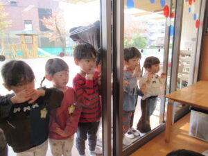 そんな様子を、窓からじーっと見ている年少組さんがいました。