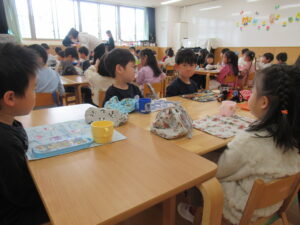 3月に入り、お弁当の日も残すところあと数回となったある日、全学年で一緒にお弁当を食べました。