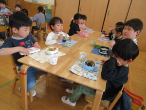 みんなでおべんとうの歌を歌います!「おべんとおべんとうれしいな〜♪」